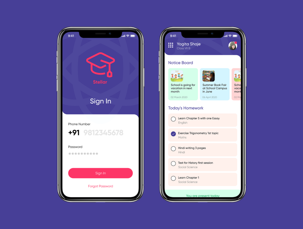 Stellar School Management Mobile App - Student Module UI Kit is a part of a solution to manage Super Admins, Teachers, Students, Finance Staff, and Bus Staff. These different mobile apps will give fruitful user experience to their stakeholders. This UI Kit contains ready to use components, Typography, Design System, and customizable Color Palette. With 25+ Unique Layouts, we covered almost every aspect of a Student App would require. This UI Kit is available for both Adobe XD and Figma.