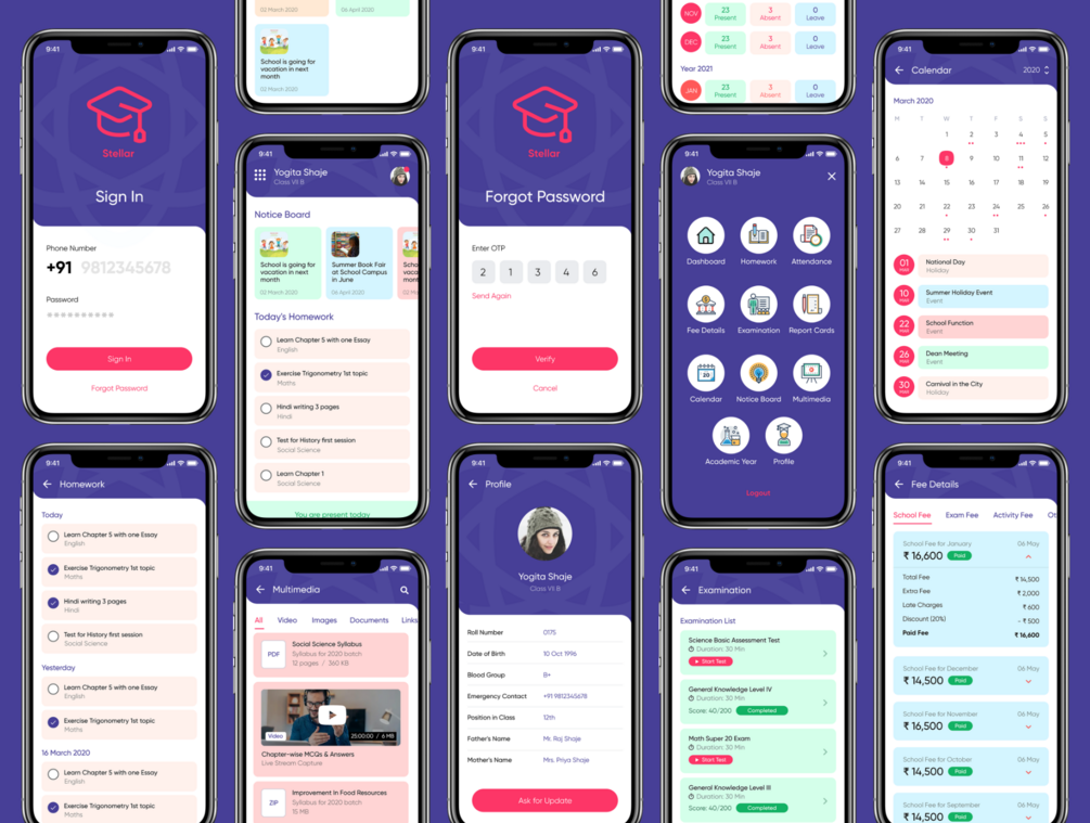 Stellar School Management Mobile App - Student Module UI Kit is a part of a solution to manage Super Admins, Teachers, Students, Finance Staff, and Bus Staff. These different mobile apps will give fruitful user experience to their stakeholders. This UI Kit contains ready to use components, Typography, Design System, and customizable Color Palette. With 25+ Unique Layouts, we covered almost every aspect of a Student App would require. This UI Kit is available for both Adobe XD and Figma.